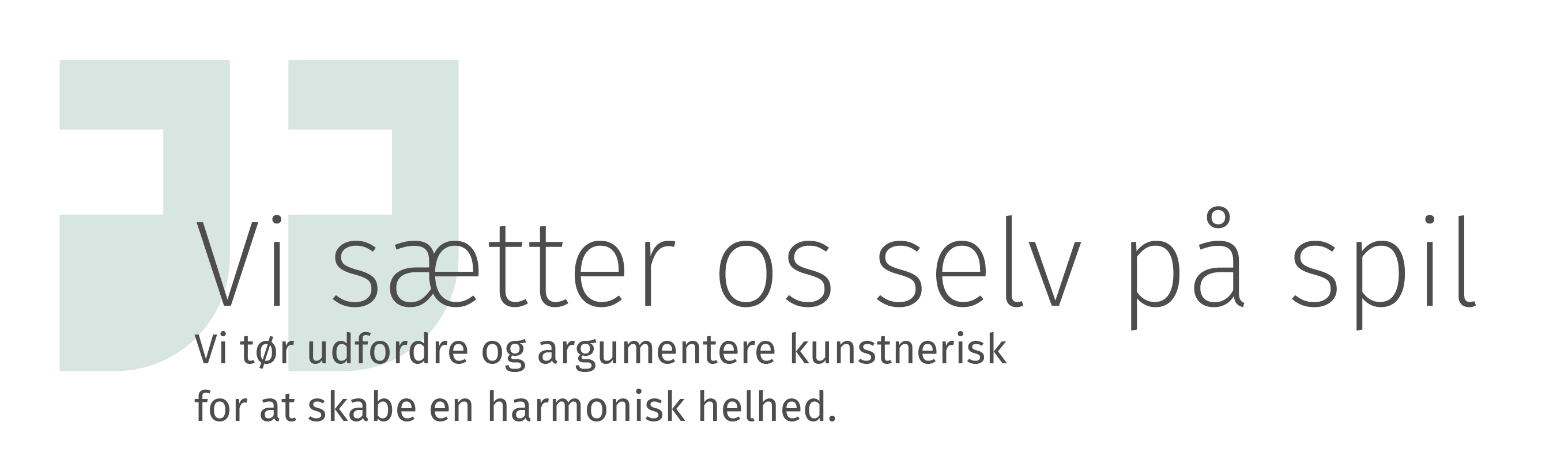 Vi har en holistisk tilgang, der kombinerer videnskab, praktisk og omsorgsfuld sans for detaljen med et miljømæssigt og situationsmæssigt blik. Vi lægger vægt på faglig kvalitet, der både hviler på godt købmandskab, og også er samfundsmæssigt motiveret, visionært og ansvarlig.